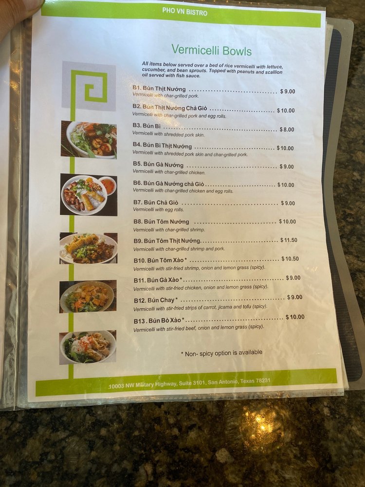 Welcome to Pho VN Bistro, an inviting Vietnamese eatery located at 11503 NW Military Hwy #307, San Antonio, TX. Renowned for its delicious offerings, Pho VN Bistro combines authentic Vietnamese flavors with modern conveniences like takeout, delivery, and outdoor seating.
